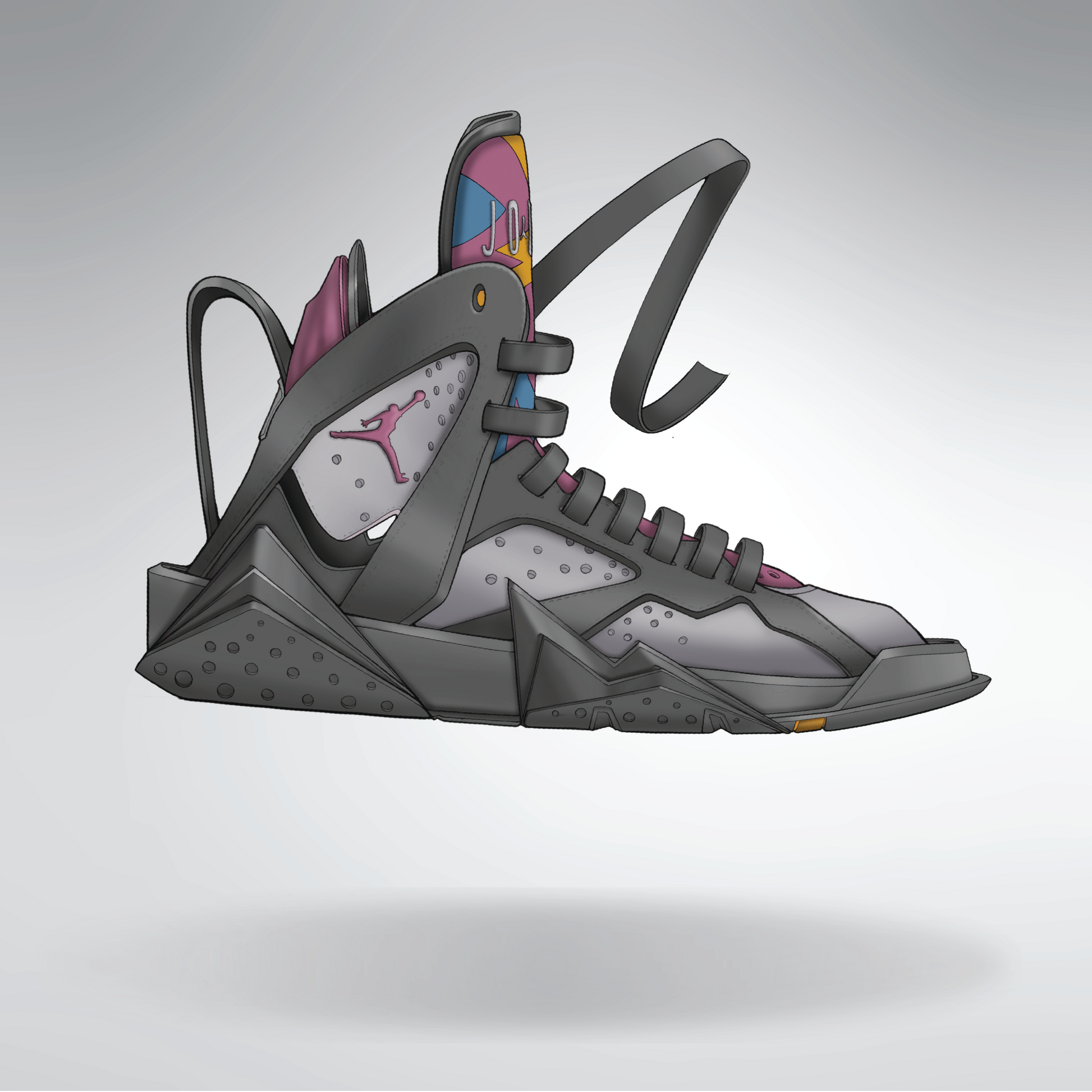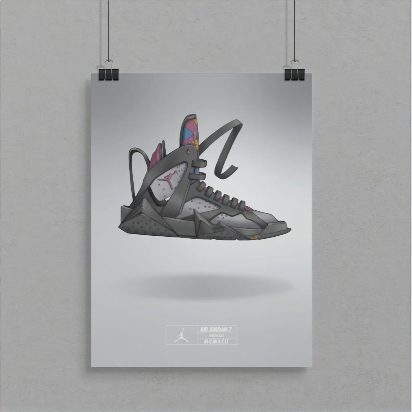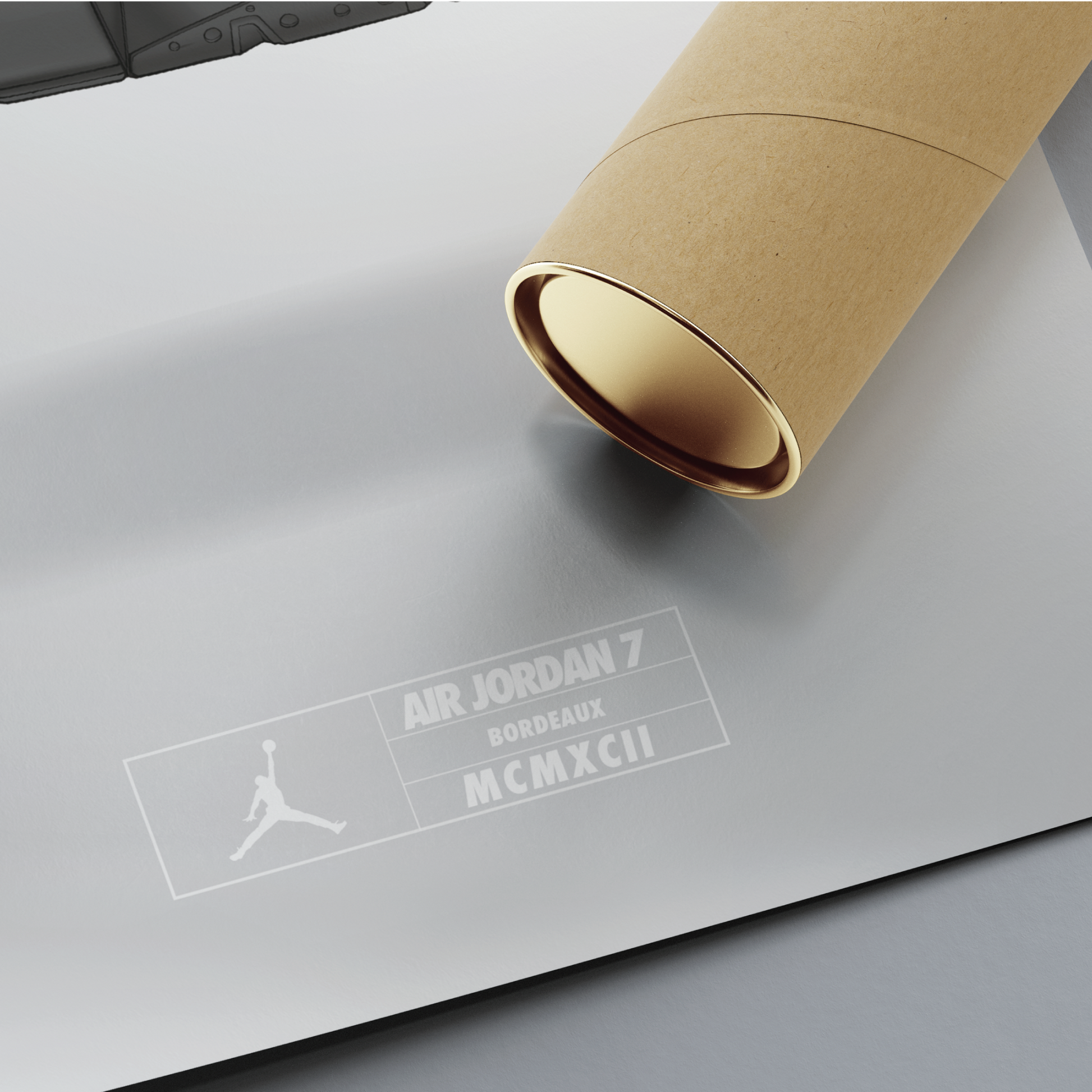 The Air Jordan 7 'Bordeaux' is regarded to be the most distinctive of the five initial colorways released in 1992. . The sneaker features a color-blocked black and gray nubuck top, and a wildly expressive tongue. Get a print of this classic sneaker while they're still available.