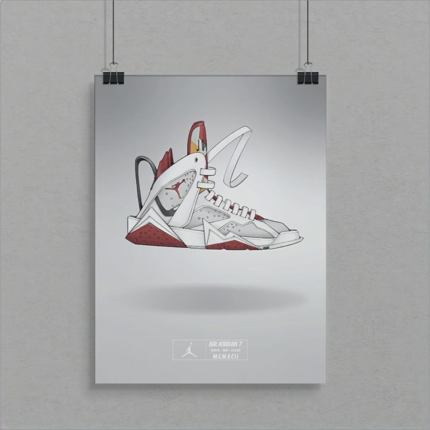 The the Air Jordan ‘Hare’ celebrates the novel partnership between Michael Jordan and Bugs Bunny, who starred together in a memorable ‘90s ad campaign. The "Hare Jordan 7", features a light silver nubuck base and white leather overlays, along with contrasting pops of red on the outsole, neoprene tongue and the shoe’s branding elements. Celebrate this iconic partnership buy getting a print while they last.